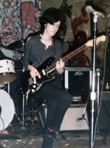 Beschta was able to stay rent-free at the Fine Arts Building at 232 East 59th Street in return for looking after its photo gallery.[5] She shared a loft with Jane Fire and they formed Erasers, a punk-rock band, in 1974, with Fire on drums and Beschta as the singer/songwriter and guitarist.[5] Several musicians such as Richie Lure and Anton Fig tried out with the band and the most lasting were Jody Beach on bass guitar and David Ebony, a classically trained musician.[5] The band practised in the basement of a deli near the Fine Arts Building and they played some impromptu gigs in the street there.[5] They performed at venues including The Great Gildersleeve's and, most especially, CBGB, which was a famous proving ground for punk rock bands.[5] Their style was enthusiastic, feminist and non-commercial.[5] They attracted some favourable reviews but did not sign with a record label.[5]