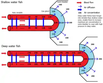 - ↑ Pelster B (December 2001). "The generation of hyperbaric oxygen tensions in fish". News Physiol. Sci. 16 (6): 287–91. doi:10.1152/physiologyonline.2001.16.6.287. PMID 11719607. S2CID 11198182.