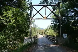 The Sylamore Creek Bridge is a historic bridge in east central Stone County, Arkansas, just south of the Ozark-St. Francis National Forest. It carries County Road 283 across Sylamore Creek, a short way west of Arkansas Highway 9 and north of the Holiday Mountain Resort in Allison. It is a wire-cable suspension bridge, with steel towers mounted on concrete piers supporting four main cables that are anchored into concrete abutments. The bridge is 202 feet (62 m) long, with a deck width of 19 feet 6 inches (5.94 m) and a clearance height of 11 feet (3.4 m). Built in 1945, it is one of three known wire-cable bridges in the state.[2]