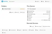 Syncthing is a free, open-source peer-to-peer file synchronization application available for Windows, macOS, Linux, Android, Solaris, Darwin, and BSD.[6] It can sync files between devices on a local network, or between remote devices over the Internet. Data security and data safety are built into its design. Version 1.0 was released in January 2019 after five years in beta.[7]