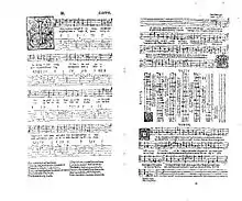 A table-book is a manuscript or printed book which is arranged so that all the parts of a piece of music can be read from it while seated around a table. They were made in the 16th and 17th century for both instrumental and vocal pieces. They are an extension of the idea of Choir books, in which all parts are displayed on one page, in contrast with partbooks, which have a different book for each part (one book for all the soprano parts, another for all the altos, etc.) and each performer has their own book.