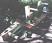 Early examples have been found at Hochdorf, Germany,[4] and Apremont, Haute-Saône, France,[5] as well as in Italy, Greece, and Austria.[1] Elaborate tablet-woven bands are found in many high status Iron Age and medieval graves of Europe as well as in the Roman period in the Near East. They are presumed to have been standard trim for garments among various European peoples, including the Vikings.[6] Many museum examples exist of such bands used on ecclesiastical textiles or as the foundation for elaborate belts in the European Middle Ages. In the 17th century, tablet weaving was also used to produce some monumental silk hangings in Ethiopia.[7]
