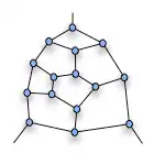 In mathematics, Tait's conjecture states that "Every 3-connected planar cubic graph has a Hamiltonian cycle (along the edges) through all its vertices". It was proposed by P. G. Tait (1884) and disproved by W. T. Tutte (1946), who constructed a counterexample with 25 faces, 69 edges and 46 vertices. Several smaller counterexamples, with 21 faces, 57 edges and 38 vertices, were later proved minimal by Holton & McKay (1988). The condition that the graph be 3-regular is necessary due to polyhedra such as the rhombic dodecahedron, which forms a bipartite graph with six degree-four vertices on one side and eight degree-three vertices on the other side; because any Hamiltonian cycle would have to alternate between the two sides of the bipartition, but they have unequal numbers of vertices, the rhombic dodecahedron is not Hamiltonian.