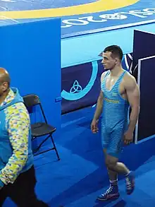 Shadukayev at the 2021 World Wrestling Championships in Oslo, Norway