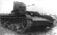 The Vickers-built 6-ton tanks had the designation V-26 in the USSR. Three British tanks were successfully tested for cross-country ability at the small proving ground near Moscow on Poklonnaya Hill in January 1931. One tank hull was tested for gunfire resistance in August 1931. Kliment Voroshilov ordered the creation of the "Special Commission for the Red Army (RKKA) new tanks" under the direction of S. Ginzburg to define the tank type suitable for the Red Army. The T-19 8-ton light infantry tank, developed by S. Ginzburg under that programme at the Bolshevik Factory in Leningrad was a theoretical competitor to the British Vickers 6-Ton. The first prototype of the complex and expensive T-19 was not finished until August 1931. Because both tanks had advantages and disadvantages, S. Ginzburg suggested developing a more powerful, hybrid tank (the so-called "improved" T-19) with the hull, home-developed engine and armament from the native T-19, and the transmission and chassis from the British Vickers 6-ton.[2][4] On 13 February 1931, the Vickers 6-Ton light infantry tank, under the designator T-26, officially entered service in the Red Army as the "main tank for close support of combined arms units and tank units of High Command reserve".[2][4]