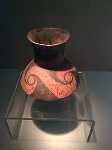 A painted pottery jar excavated from the Taosi site. Exhibit of the Shanxi Museum.