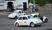 Taxco lies along Mexican Federal Highway 95 and the toll road Mexican Federal Highway 95D. Taxco has two long-distance bus stations: the Terminal Estrella de Oro in the south and the Autobuses Estrella Blanca station in the northeast. There is no airport in Taxco. Transport within Taxco is generally by taxi, or "Kombis"—converted Volkswagen vans that serve as minibuses.[15]