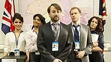 - ↑ "First-look behind-the-scenes video for BBC Two's Ambassadors, starring Mitchell and Webb". BBC. 7 October 2013. Retrieved 13 October 2013.