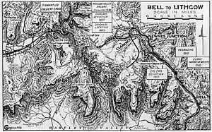 The Act approving the construction of the double-line deviation was passed by the New South Wales Parliament in December 1906.[3][6] Construction started near the former Oakey Park Colliery on the 1 in 42 Bottom Road, which had already been duplicated in 1880. It eventually passed Bottom Points before entering a series of ten tunnels. Originally eleven were planned, but one of them was opened out instead, owing to the discovery of rock faults, leaving the deepest cutting on the New South Wales rail system. The headquarters for the works was at nearby Clarence, where many of the navvies were temporarily housed. Here a temporary power station was established for rock drills, lighting, compressors, etc.[7]