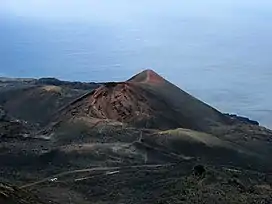 Teneguía (Spanish pronunciation: [teneˈɣia]) is a monogenetic cinder cone – a volcanic vent which has been active once (in 1971) and has had further seismic activity.[2] It is situated on the island of La Palma, one of the Canary Islands, and is located at the southern end of the sub-aerial section of the Cumbre Vieja volcano, of which Teneguía is just one of several vents.[4]