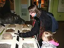 Visitors to Derby Museum using a mobile phone to scan a QRpedia QR code