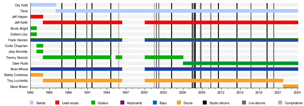 • Curtis Chapman – guitar (1983–1984; before the breakout of Tesla, when they were still called City Kidd)