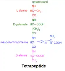 A tetrapeptide is a peptide, classified as an oligopeptide, since it only consists of four amino acids joined by peptide bonds. Many tetrapeptides are pharmacologically active, often showing affinity and specificity for a variety of receptors in protein-protein signaling. Present in nature are both linear and cyclic tetrapeptides (CTPs), the latter of which mimics protein reverse turns which are often present on the surface of proteins and druggable targets.[1][2] Tetrapeptides may be cyclized by a fourth peptide bond or other covalent bonds.