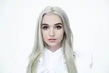 Poppy has been compared to artists such as Grimes, Icona Pop, Melanie Martinez, and Charli XCX.[17] Poppy has described herself as a "kawaii Barbie child".[185][186] She has described her music style as "music [that] makes you want to rule the world." Poppy states that she drew inspiration from genres such as J-pop and K-pop, as well as reggae. She recalls beginning to write music in 2012. She told Tiger Beat her musical inspirations are Cyndi Lauper, unicorns and Elvis Presley.[187] She is a fan of Jimmy Eat World, No Doubt, Norma Jean, Blondie, Gary Numan, Of Montreal, and Madonna.[185][188][189]