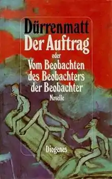 Der Auftrag (English: The Assignment, subtitled Or, on the Observing of the Observer of the Observers) is a 1986 novella by the Swiss writer Friedrich Dürrenmatt. The first English publication appeared in 1988, translated by Joel Agee. The experimental narrative is divided into twenty-four parts, each one a single sentence spanning many pages. In his foreword to the 2008 English language edition, Theodore Ziolkowski notes that the inspiration for the twenty-four sentence structure came after listening to a recording of Glenn Gould performing the first half of Bach's The Well-Tempered Clavier I, itself a work in twenty-four movements.[1] Inspiration for the plot came from the Austrian poet Ingeborg Bachmann's unfinished novel The Franza Case, which Dürrenmatt's second wife, documentary filmmaker Charlotte Kerr, was attempting to turn into a film at the time of their meeting.[2]