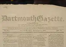 - ↑ Volume 1, No. 1 issue of the Dartmouth Gazette. Page 2.