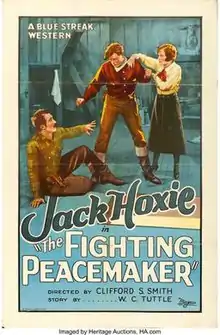 The Fighting Peacemaker is a 1926 American silent Western film directed by Clifford Smith and starring Jack Hoxie, Lola Todd, and Ted Oliver.[1]