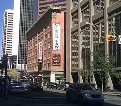 The Grand Theatre is housed in the historic Lougheed Block, which was built in 1912 by Sir James Alexander Lougheed[1] when Calgary had a population of only 50,000 people.[2] The building was designed by L.R. Wardrop and owned by Lougheed and Taylor, a firm established by Sir Lougheed. The Lougheed Block was built as a multi-purpose commercial building, accommodating retail stores, offices, living quarters, and The Grand Theatre on the ground floor and was the biggest theatre in western Canada at the time. The theatre was leased to Bill Sherman to manage and Lougheed named the theatre the "Sherman Grand" after him.[3]