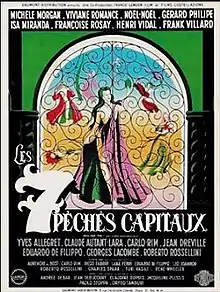 The Seven Deadly Sins (French: Les Sept Péchés capitaux) is a 1952 French/Italian co-production motion picture drama. The film stars Michèle Morgan, Françoise Rosay, Viviane Romance, Maurice Ronet, Louis de Funès, Isa Miranda, Henri Vidal and Gérard Philipe. It has seven separate sections: ("Pride/L'Orgueil", "Lust/La Luxure", "Sloth/La Paresse", "Envy/L'Envie", "Avarice and Anger/L'Avarice et la colère", "Gluttony/La Gourmandise", "The Eighth Sin/Le Huitième péché") with five episodes from France, and two episodes from Italy.