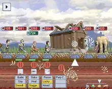 The Spirit Engine 2's battle system takes place in real time, and characters attack automatically. Battle speed may be sped up, slowed down, or paused. The game removes the mana mechanic of The Spirit Engine that allowed for a limited number of attacks before needing to recharge, and players' actions can be paused to build up extra attack power or wait for an opening. The two teams form lines on either side of the screen. On one side is the player's three characters, on the other side are the enemies currently being fought. The player can rotate the three party members: changing who is in front, in the middle, and in the back. Melee attacks cause characters to change positions, potentially becoming vulnerable, while ranged attacks can strike back row, or multiple characters. Party members have "damage multipliers" which rise as the number of continuous hits sustained increases and vice versa. Characters, both player and enemy, are automatically revived after a certain amount of time with decreased health. All health is restored between battles.[2]