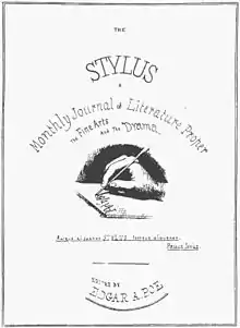 The Stylus, originally intended to be named The Penn, was a would-be periodical owned and edited by Edgar Allan Poe. It had long been a dream of Poe to establish an American journal with very high standards in order to elevate the literature of the time. Despite attempts at signing up subscribers and finding financial backers and contributors, the journal never came to be.