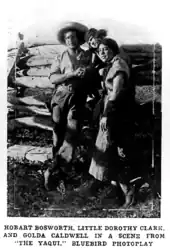 • Hobart Van Zandt Bosworth (1867-1943) was 48 years old when he starred in this movie as Tambor. Bosworth was a well-known Universal actor. After Universal signed a 21-year-old Emory Johnson, Hobart thought he saw a potential mega-career for the 21-year-old. Hobart decided to mentor the young actor.[9] After finishing The Yaqui released March 1916, they immediately made another feature-length Western - Two Men of Sandy Bar released in April. Later in the year, Emory would make two more films with Bosworth. They would continue collaborating in other films in the coming years. In Bosworth's long cinematic career, he appeared in nearly 300 films.