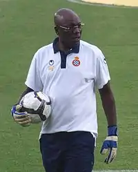 N'Kono served as assistant coach to the Cameroon national team, at the same time as being goalkeeping coach at former club Espanyol.[12] In 2002, he was arrested by Malian police for allegedly using "black magic", prior to the African Cup of Nations semi-final against Mali (3–0 win). He was dragged onto the running track after stepping onto the pitch at the 26 March Stadium alongside coach Winfried Schäfer,[13] and eventually received a one-year ban,[14] which was then lifted, although he was not allowed to sit on the bench for the final;[15] the former also received an apology from the office of the Malian president.[16]