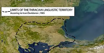 Limits of the (southern) Thracian linguistic territory according to Ivan Duridanov, 1985