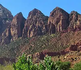 Three Marys are three sandstone pillars in Zion National Park in Washington County, Utah, United States.[3]