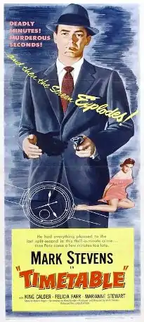 Time Table is a 1956 American film noir crime film produced and directed by Mark Stevens, who also stars as the lead character.[1] The film includes early appearances by Jack Klugman and Felicia Farr. Other cast members include King Calder and Marianne Stewart. The film was distributed by United Artists.