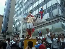 - 27 February – Students led by Juan Requesens protested against violence, detention and torture of students and the shortages in Venezuela, with Herique Capriles visiting, but not as a spokesperson.[106] The government issued an arrest warrant for Carlos Vecchio, a leader of Popular Will on various charges.[107] Medics in Maracay, Aragua state, protest against the condition of the hospitals in the state.[108] President Maduro decreed 27 February as "The Day of No Work in Venezuela" in respect for the fallen of the protests (that date was also the 25th anniversary of the historic Caracazo of 1989).[109]