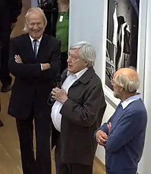 Picture of (from left to right); Hasse Persson; director of the Borås art museum, Hans Hammarskiöld; photographer, Lennart Olson; photographer. Taken at the Tio fotografer exhibition in Borås 2009.