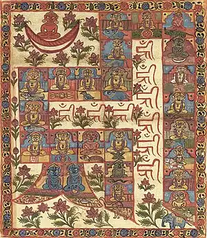 The first Tirthankara, Rishabhanatha is mentioned in Hindu texts like the Rigveda,[39] Vishnupurana and Bhagwata Purana.[40] The Yajurveda mentions the name of three Tīrthaṅkaras – Ṛiṣhabha, Ajitnātha and Ariṣṭanemi.[41] The Bhāgavata Purāṇa includes legends about the Tirthankaras of Jainism particularly Rishabha.[42] Yoga Vasishta, Chapter 15 of Vairagya Khanda, Sloka 8 gives the saying of Rama: