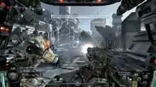 Up to twelve human players[10] choose their pilot types and are dropped on the map, beginning the game.[11] Titans can be deployed periodically, based on an onscreen timer, which must complete its countdown to zero before a Titan can be summoned. Killing other players reduces the amount of time remaining.[11] When summoned, players are told to "standby for Titanfall", whereupon a Titan drops from the sky, surrounded by a protective forcefield.[11] Unlike player-characters in games like Call of Duty and Battlefield,[12] pilots are agile and accumulate momentum while running (similar to Tribes).[9] Players run on walls, double jump with a jet pack, vault over obstacles, glide across ziplines, and chain together combos.[12] Pilot and Titan controls are identical except where the pilot's double jump becomes the Titan's dash,[9] as Titans cannot jump.[11] The Titans, somewhere between battle tanks and a mecha,[12] are slower than the nimble pilots but are much better protected and have powerful weapons.[11] Battles include artificial intelligence soldiers (human grunts and robotic spectres) that are designed as human player competition, support, and scenery.[13] Games end with a race to the losing team's evacuation dropship.[11]