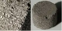Magnesium can be removed either thermally or by reactive measures through the dissolution in acid.[26][56] [57] Esen & Bor [26] found a critical content of magnesium as a space holder to be 55-60%, above which compacts shrink excessively during sintering. Foams ranging in porosity from 45 to 70% with a bimodal pore distribution and compressive strength of 15 MPa (for 70% porosity) were demonstrated. Kim et al. fabricated foams with anisotropic pores through the intentional deformation of Mg particles during compaction in an effort to enhance mechanical properties. A final porosity of 70% equated to a yield strength of 38 MPa for normal orientation of pores and 59 MPa when pores were aligned with the direction of compression.[57]