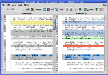 tkdiff uses colors to suggest differences between files and within shared lines.