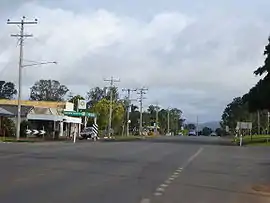 The town's name was changed to Tolga in 1903 when Tablelands railway line was extended from Mareeba to Atherton and the local railway station was to be called Tolga, a name thought to be derived from the Aboriginal word for either place where the scrub begins or red volcanic soil.[2][13] The line opened on 10 August 1903.[14] A branch line from Tolga to Yungaburra was built, opening on 15 March 1910, which was subsequently extended in stages to Millaa Millaa by 19 December 1921.[14] The line between Atherton and Mareeba became non-operational on 1 July 2011 and was officially closed on 15 March 2013.[15] Tolga railway station was between the Kennedy Highway and Lawson Street (17°13′15″S 145°28′47″E / 17.2208°S 145.4797°E).[16]