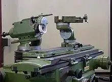 A radius grinder (or radius tool grinder) is a special grinder used for grinding the most complex tool forms, and is the historical predecessor to the CNC tool and cutter grinder. Like the CNC grinder, it may be used for other tasks where grinding spherical surfaces is necessary. The tool itself consists of three parts: The grinder head, work table, and holding fixture. The grinder head has three degrees of freedom. Vertical movement, movement into the workpiece, and tilt. These are generally set statically, and left fixed throughout operations. The work table is a T-slotted X-axis table mounted on top of a radial fixture. Mounting the X axis on top of the radius table, as opposed to the other way around, allows for complex and accurate radius grinds. The holding fixtures can be anything one can mount on a slotted table, but most commonly used is a collet or chuck fixture that indexes and has a separate Y movement to allow accurate depth setting and endmill sharpening. The dressers used on these grinders are usually quite expensive, and can dress the grinding wheel itself with a particular radius.