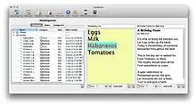 Formatting options are placed in a toolbar above the current note,[3][4] including font, size, style, text color, emphasis color (highlighting), document color,[5] and justification.[6] The program also offers the option of checking spelling as text is being entered.