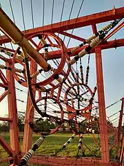 To create this directional antenna pattern two 257 metres (843 ft) tall guyed lattice steel masts were used. Until the mid-1970s these masts were used as ground-fed mast radiators and are therefore insulated against the ground. In the mid-1970s the transmission power was increased to 1500 kW, making the Topolná transmitter one of the most powerful transmitters in Europe. By this measure, both masts were equipped with cage wire antennas, which made their electrical insulation against the ground obsolete. After the installation of these cage antennas the basement insulators were bridged, but remained in place.