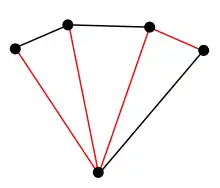 - ↑ Spanning forest. A forest of trees in which every node of the graph is visited by one of the trees.