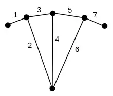 - ↑ Distance between trees is defined as the number of edges that are in one tree but not in the other. That is, it is the number of edges which must be changed in order to transform one tree into the other (Kishi and Kajitani, p.323).