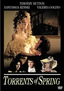 Torrents of Spring is a 1989 drama film written and directed by Jerzy Skolimowski and starring Timothy Hutton, Nastassja Kinski and Valeria Golino. It is based on the 1872 novel of the same name by Ivan Turgenev. It is a British, French, and Italian co-production. Set in 1840, the film follows a young Russian aristocrat, Dimitri Sanin, who is torn between the love of a beautiful German pastry-shop girl, Gemma Rosselli, and a Russian seductress, Princess Maria Nikolaevna. The film competed for the Golden Palm Award at the 1989 Cannes Film Festival.[1]