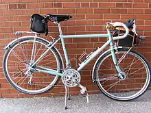 A touring bicycle with drop bars and 700C (622 mm) wheels