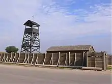 Tower and Stockade (Hebrew: חוֹמָה וּמִגְדָּל, romanized: Ḥoma u'migdal, lit. 'wall and tower') was a settlement method used by Zionist settlers in Mandatory Palestine during the 1936–39 Arab Revolt. The establishment of new Jewish settlements was legally restricted by the Mandatory authorities, but the British generally gave their tacit accord to the Tower and Stockade actions as a means of countering the Arab revolt. During the course of the Tower and Stockade campaign, some 57 Jewish settlements including 52 kibbutzim and several moshavim were established throughout the country. The legal base was a Turkish Ottoman law that was still in effect during the Mandate period, which stated that no illegal building may be demolished if the roof has been completed.