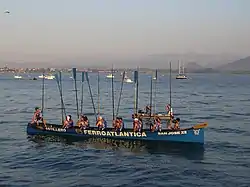 The historic trainera regattas, estropadak in Basque, are a popular sport held all along the Bay of Biscay, all the way through the coast of Basque Country, Cantabria, Asturias and Galicia between July and October. Numerous competitions are held each year such as the oldest regatta Bandera de Santander or the most famous Kontxako Bandera,[5] and there are various trainera leagues such as the premier league Liga San Miguel[6] or the second divisions Liga Asociación de Remo del Cantábrico[7] and Liga Galega de Traiñeiras.[2]