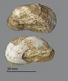 Shell of Neotrapezium liratum (specimen at MNHN, Paris)