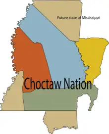 In February, 1809, a survey was begun to establish the actual boundary lines between the United States and the Choctaw Nation. The United States contracted with Silas Dinsmoor and Levin Wailes for this survey.[1]