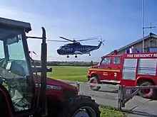 From Tresco Heliport, a year-round helicopter service connects Tresco to Penzance Heliport on the Cornish mainland. From 1983 to cessation in 2012, the service was operated by British International Helicopters. In 2020, helicopter service was resumed from a new Penzance Heliport to Tresco and St Mary's, operated by Penzance Helicopters.[26][27]