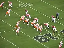 Lawrence started his freshman season behind Kelly Bryant on Clemson's depth chart, but was given equal playing time in the season's first games. Head coach Dabo Swinney named Lawrence the new starter after four games, after which Bryant announced his intention to transfer schools.[13] Lawrence led Clemson to an undefeated regular season, a 42–10 victory over Pittsburgh in the ACC Championship Game, and a bid to play in the College Football Playoff. The Tigers were ranked No. 2 in the College Football Playoff rankings, and defeated No. 3 Notre Dame, 30–3, in the 2018 Cotton Bowl Classic.[14] They advanced to the 2019 College Football Playoff National Championship game, where they defeated Alabama, 44–16, handing the Crimson Tide their worst loss of the Nick Saban era.[15] Lawrence was named Offensive MVP of the game and became the first true freshman quarterback to start for a national champion since Jamelle Holieway in 1985 for Oklahoma.[16]